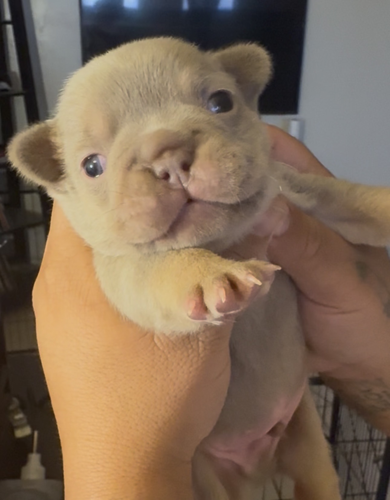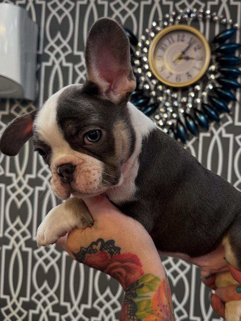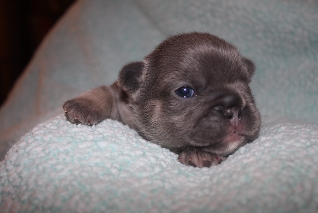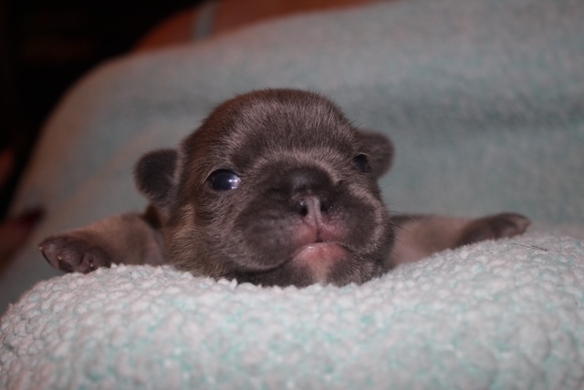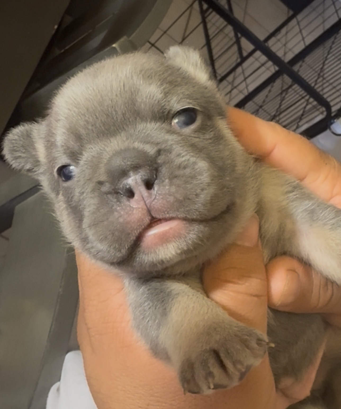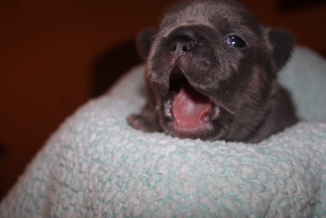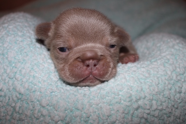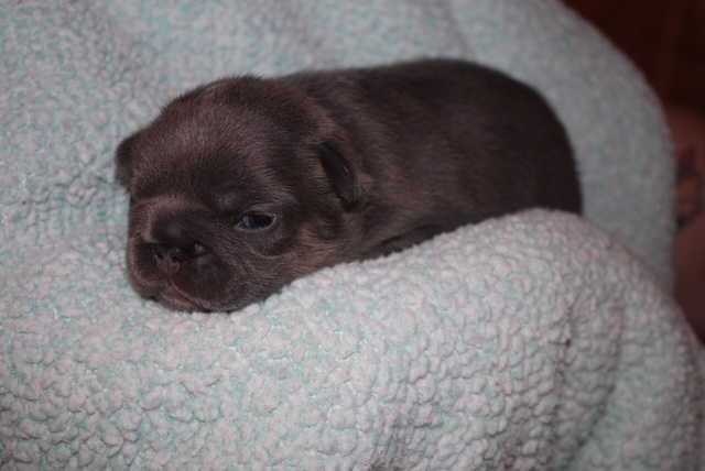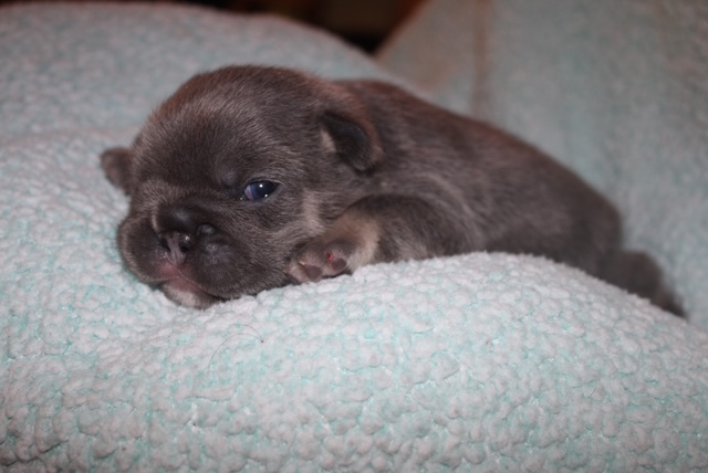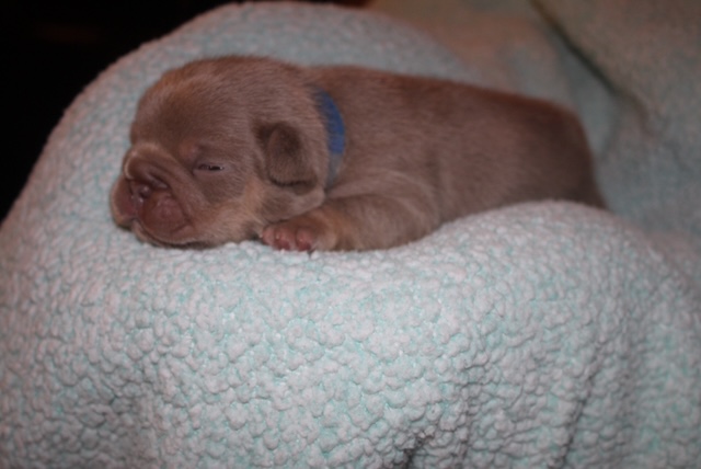 Lily was born on September 25th and is the most fiesty little thing! She’s a blue and tan, fluffy carrier, that already we see the sassy little girl she is going to be! She’s already vocal and the leader of the pack! DNA has been sent out, but we do know she carries testable chocolate, Pending results for fluffy, coco and cream.