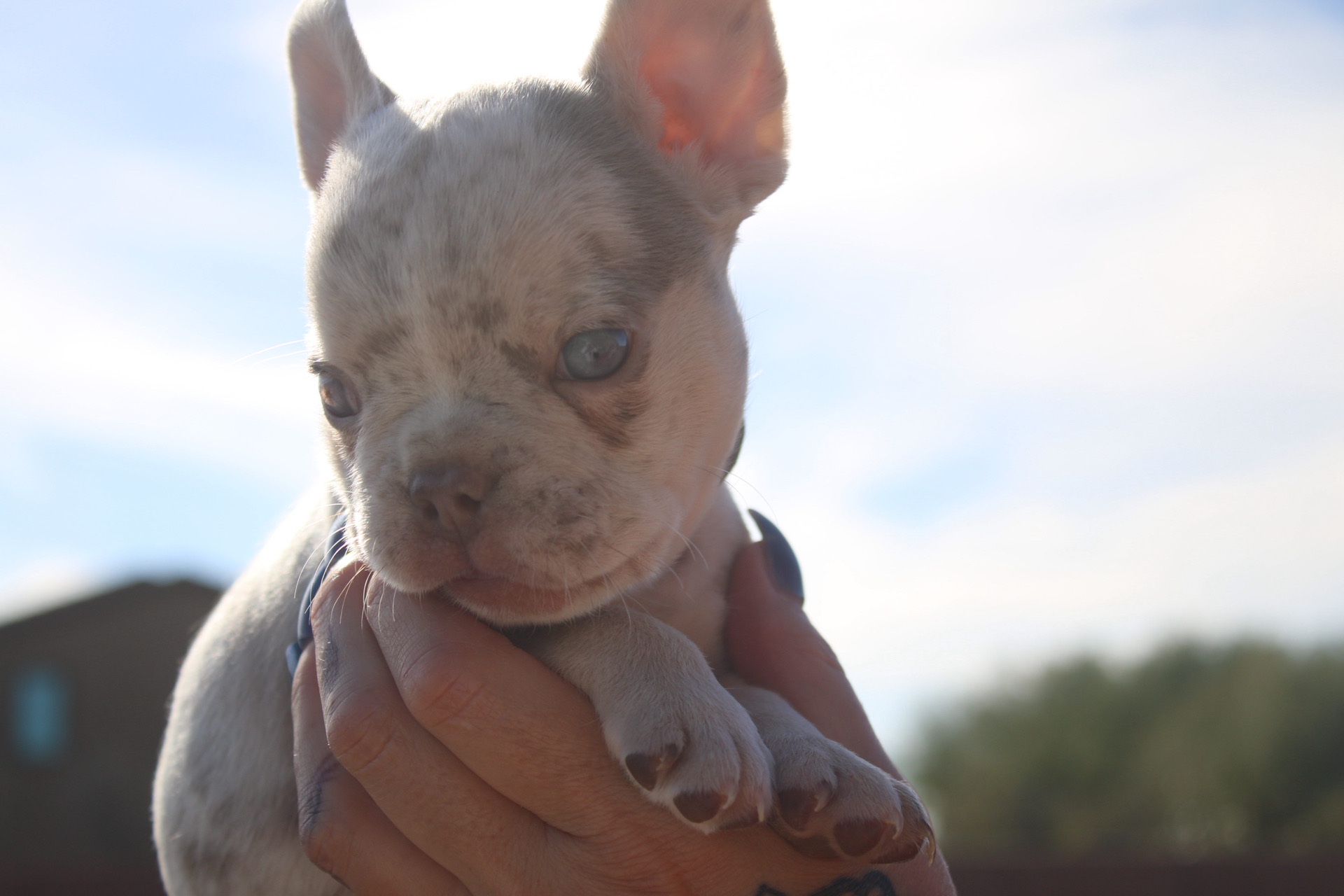 This beautiful girl was born on 10/17/2025. Aphrodite is an Isabella & Tan Merle Platinum, carrying the fluffy gene and she is absolutely stunning! DNA: At/At b/b d/d e/e M/n L1
